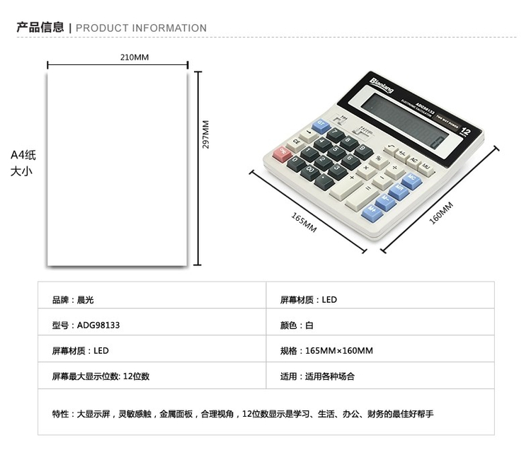 | 晨光ADG98133 标朗大号桌面型电子计算器 |