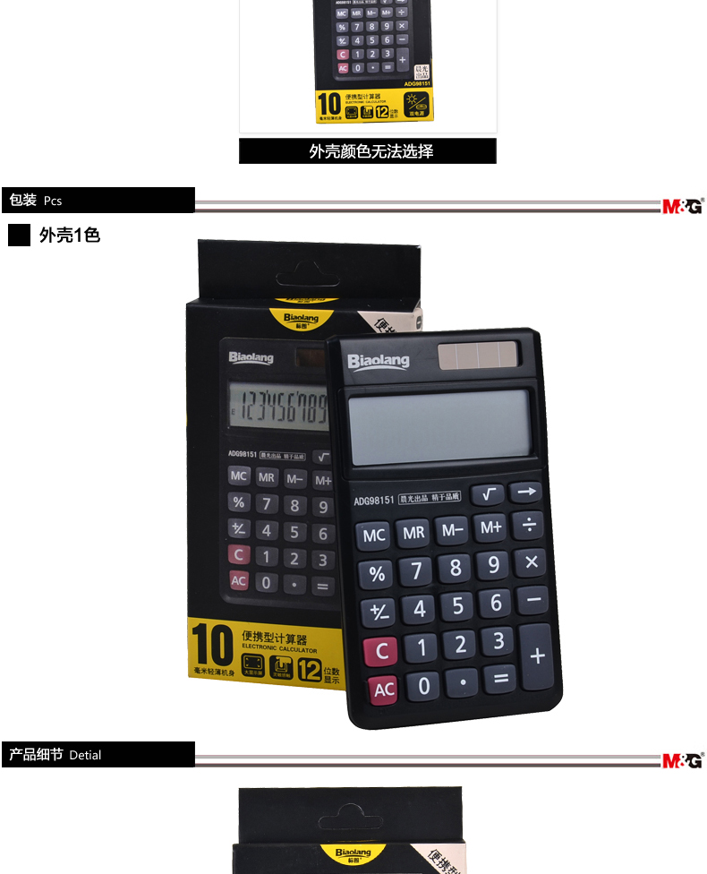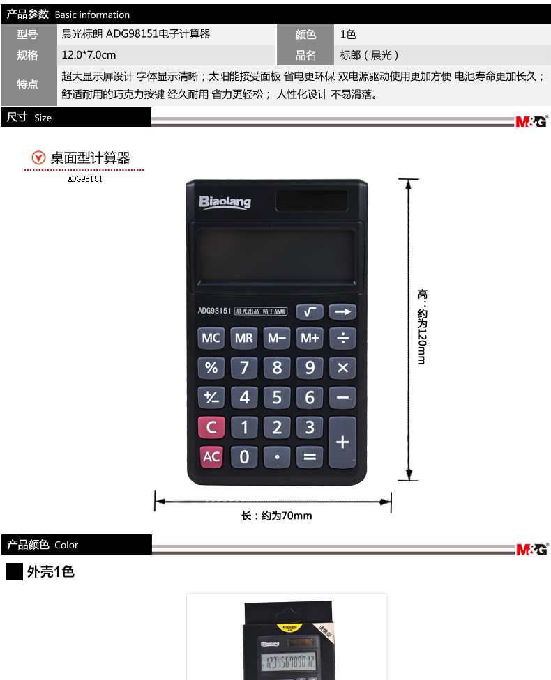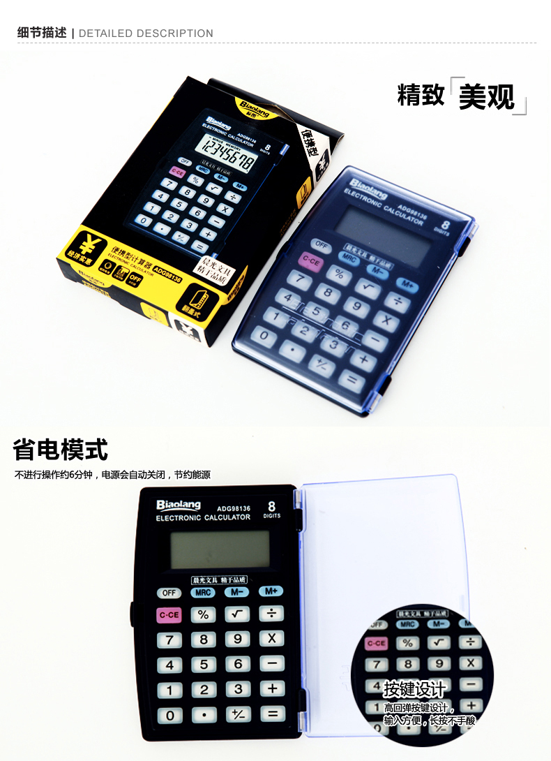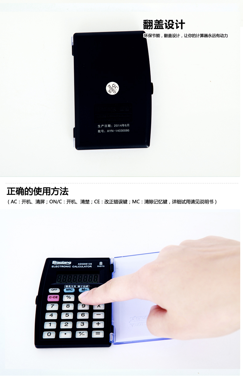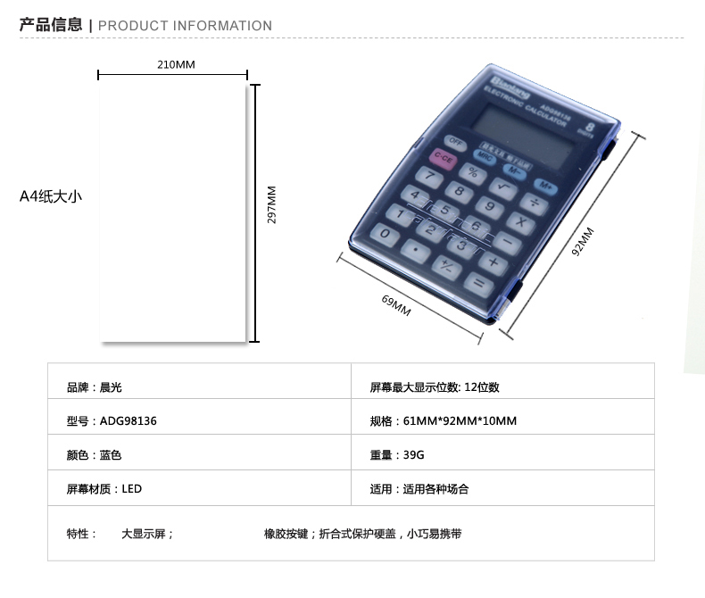| 晨光ADG98136 小号翻盖式橡胶按键太阳能电子计算器 |
