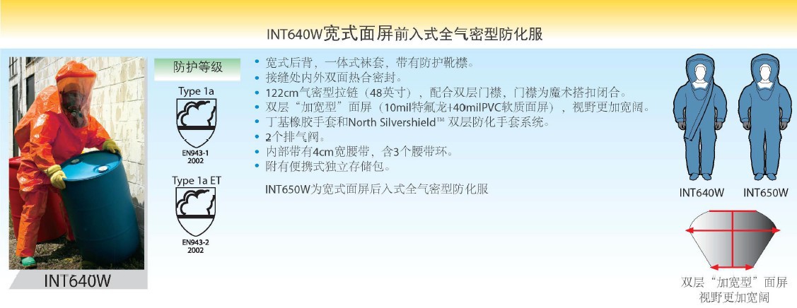 | 雷克兰INT640W宽式面屏前入式全密闭气密型防化服A级气密型防化服 | |||