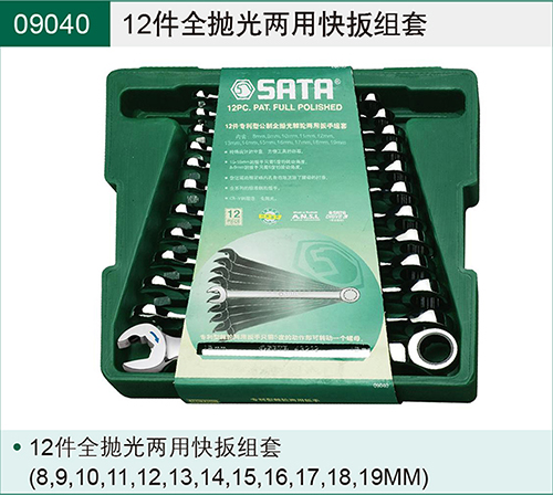 | 世达工具(SATA) 12件全抛光两用快扳组套 手动工具棘轮两用扳手/09040 |