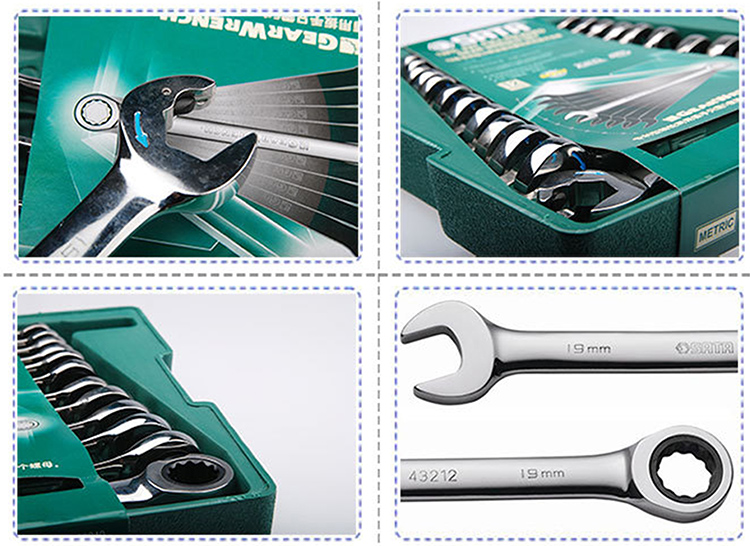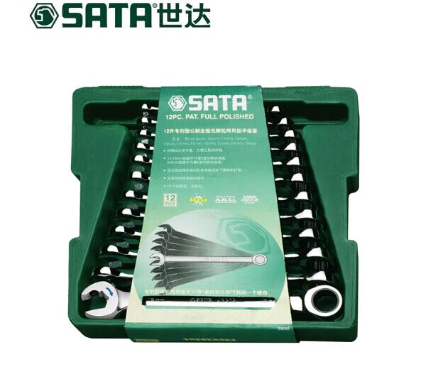 >> 世达工具(SATA) 12件全抛光两用快扳组套 手动工具棘轮两用扳手/09040