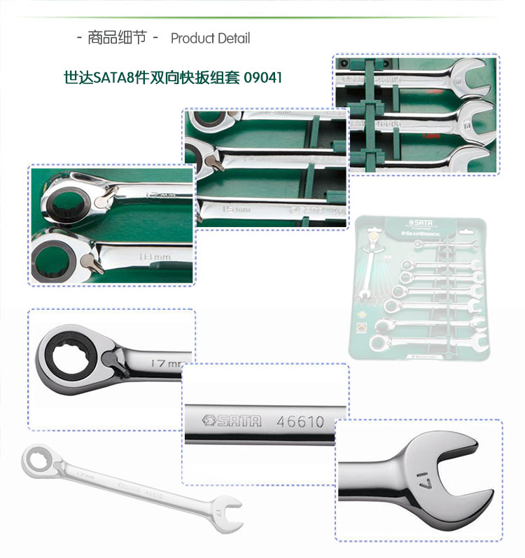 | 世达工具(SATA)盒套装 8件双向快扳组套/09041 |
