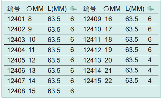 产品名称 10MM系列6角长套筒 12401-12415