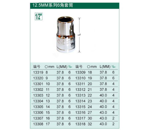 产品名称 12.5MM系列6角套筒10MM 13301-13320