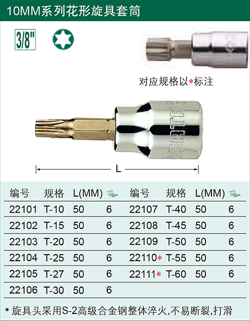产品名称 10mm系列花形旋具套筒 22101-22111