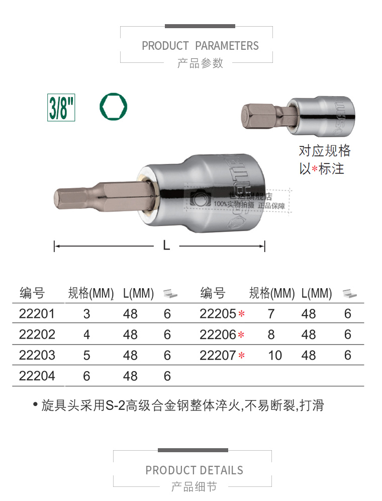产品名称 10mm系列六角旋具套筒 22201-22207
