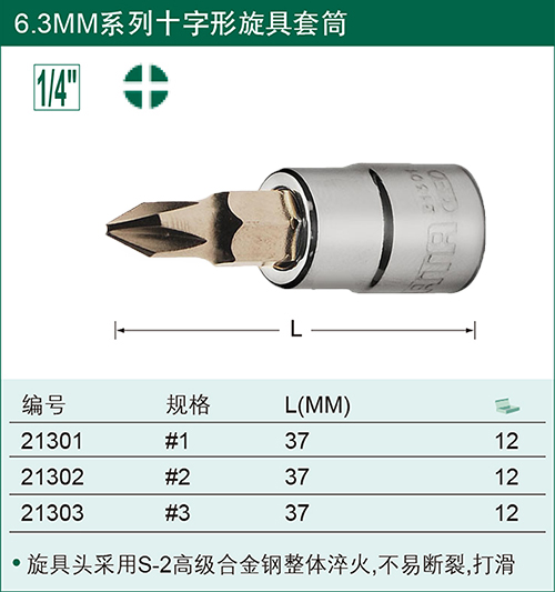 | 世达(SATA)6.3mm系列十字形旋具套筒 21301 21302 21303 |