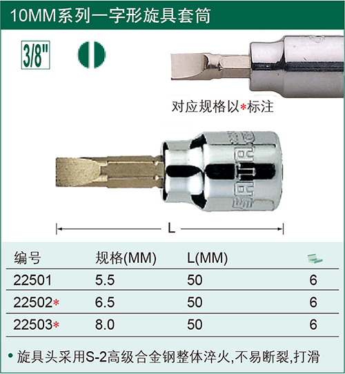 | 世达(SATA)10MM系列一字形旋具套筒 22501 22502 22503 |
