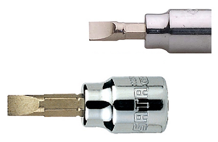 旋具头采用S-2高级合金钢整体淬火,不易断裂,打滑