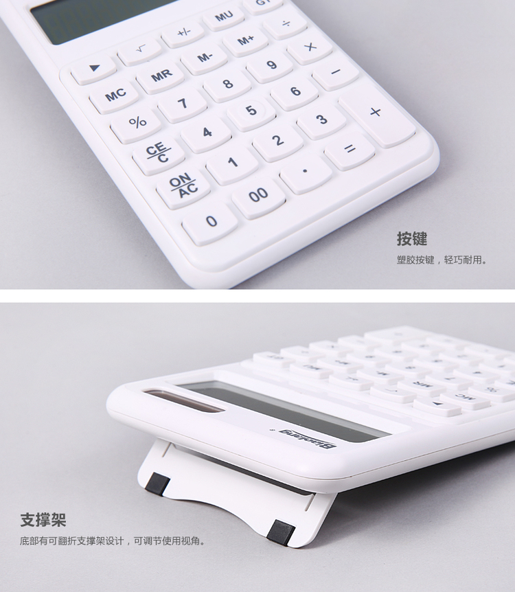 时尚简洁白色款,小巧便携带支架,双电源耐用持久