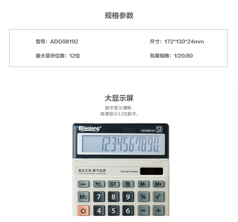 | 晨光ADG98192 标朗桌面型可调角度双电源计算器 |