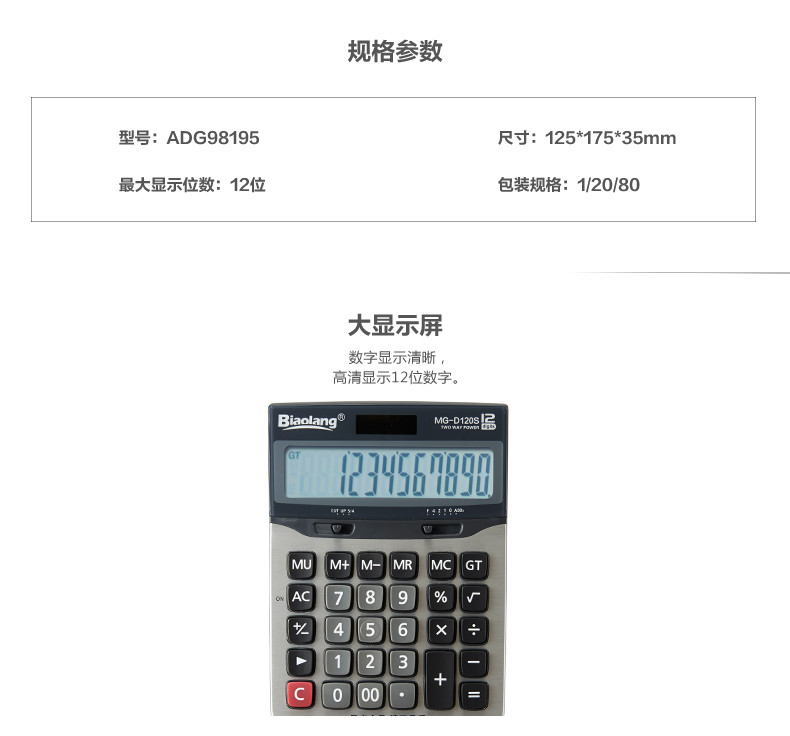 | 晨光ADG98194 桌面型12位数屏显商务计算器 |