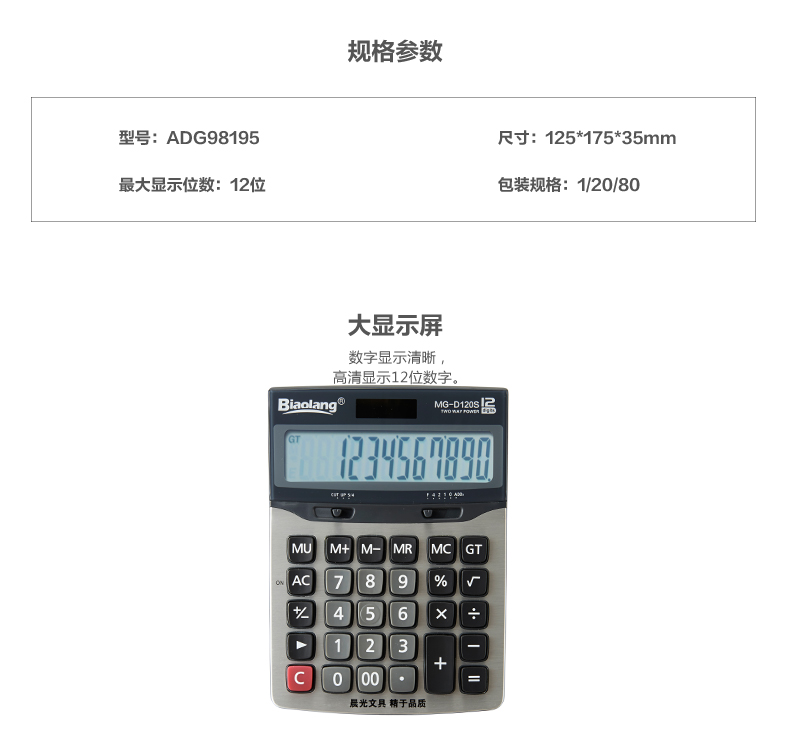 | 晨光ADG98195 MG-D120S经典桌面型计算器 |
