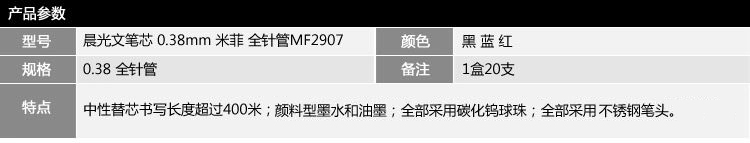 | 晨光文具 米菲笔芯MF-2907中性笔替芯 水笔芯 0.38mm全针管 |