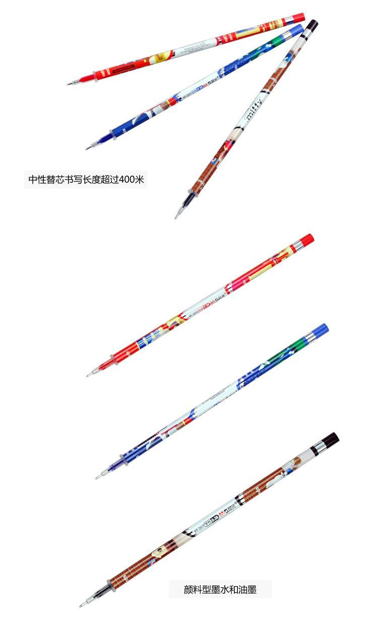 中性替芯,书写长度400米;颜料型墨水和油墨,书写顺滑。