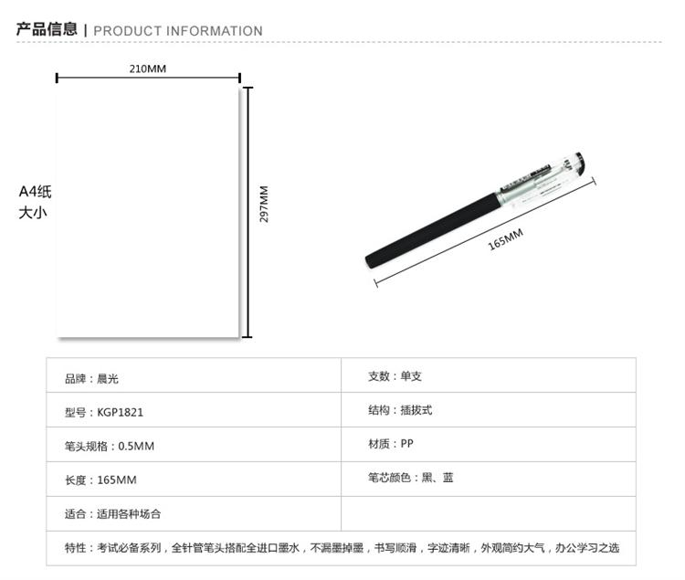 | 晨光高碳素中性笔 KGP-1821 0.5mm 水笔 12支 |