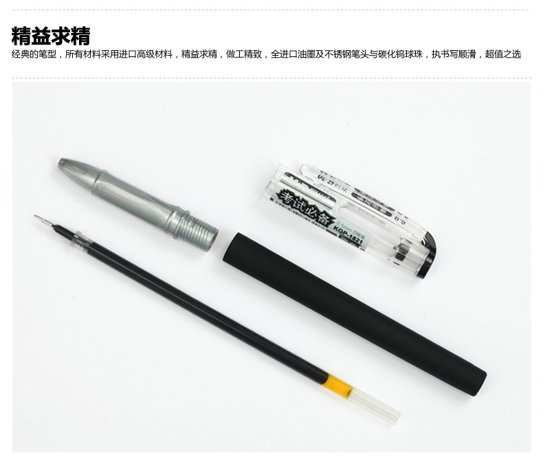 1、全进口油墨和不锈钢笔头、碳化钨球珠,书写顺滑。