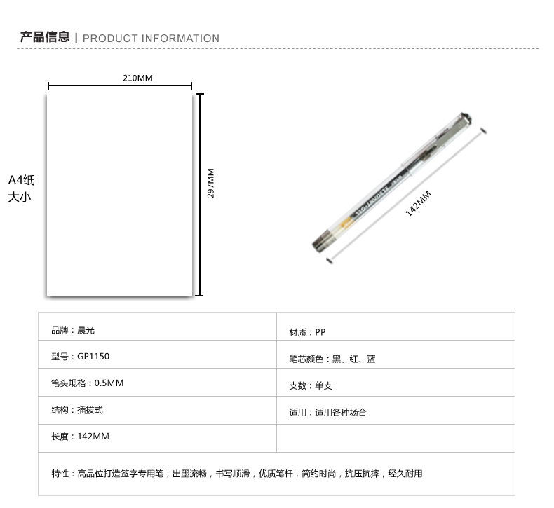 | 晨光 GP-1150 办公中性笔 致顺签字笔 超顺滑水笔 0.5mm水笔 |
