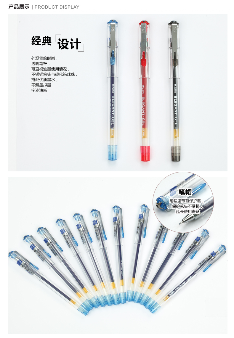 外观简约时尚,透明笔杆,可直视油墨的使用情况。