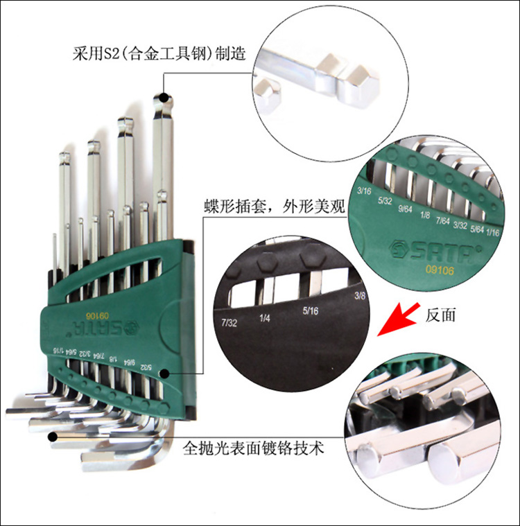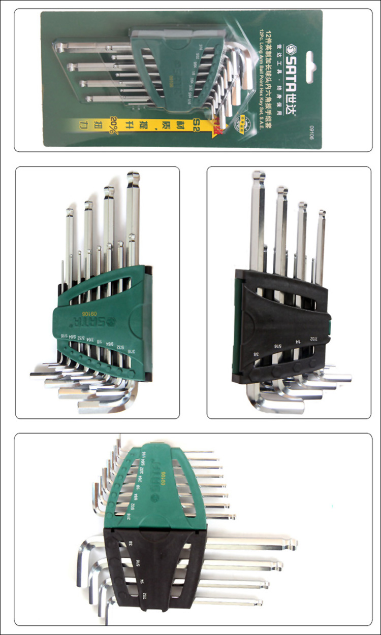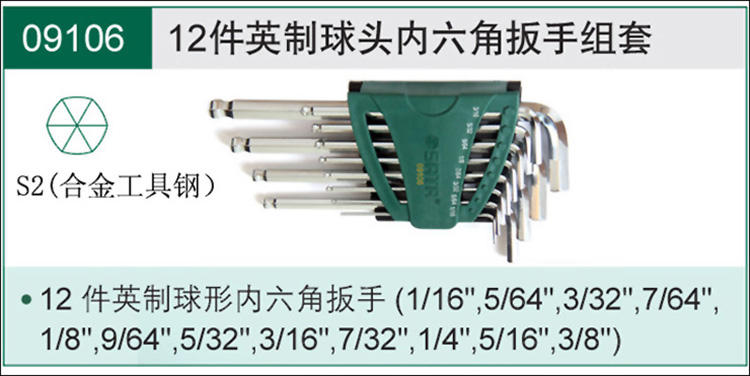 >> 世达工具(SATA)12件英制加长球头内六角扳手套装/09106