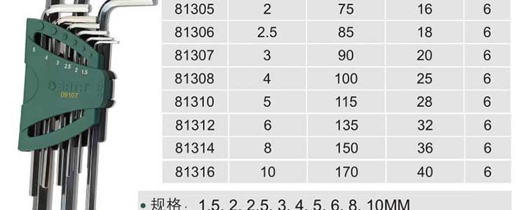 | 世达工具(SATA)9件套内六角扳手 L型内六角螺丝刀套装加长/09107 |