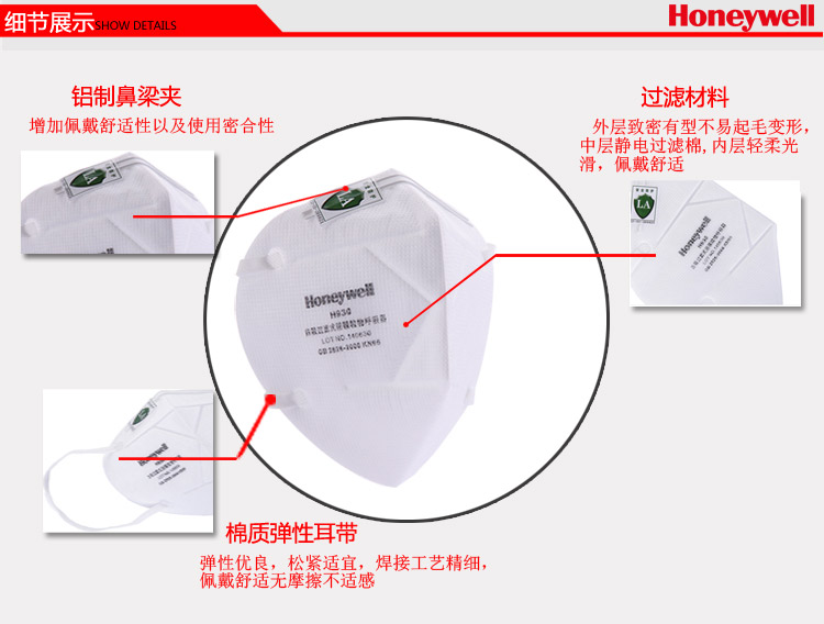 | 霍尼韦尔H930 KN95 折叠式口罩,白色,耳带式/头带式,50 只/盒,600 只/箱 | |||