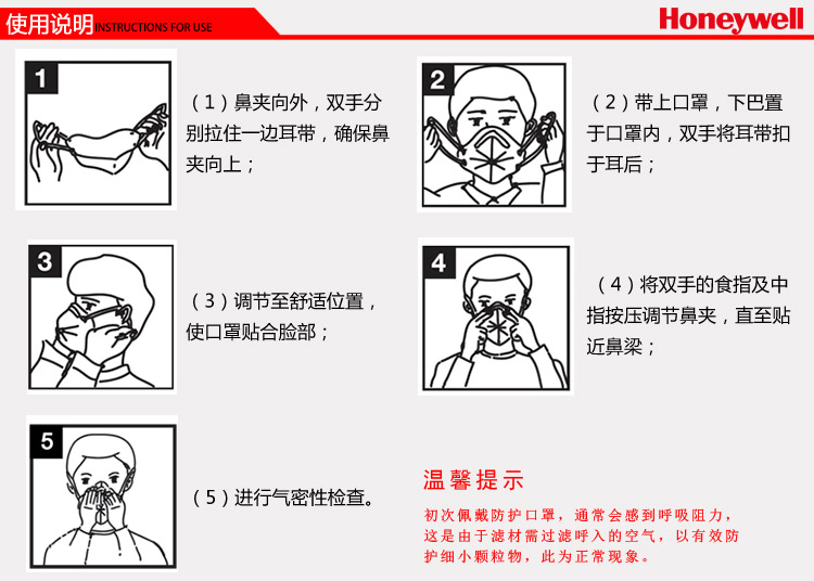 标准:中国 GB2626-2006 标准,级别:KN95,过滤效果:≥95%