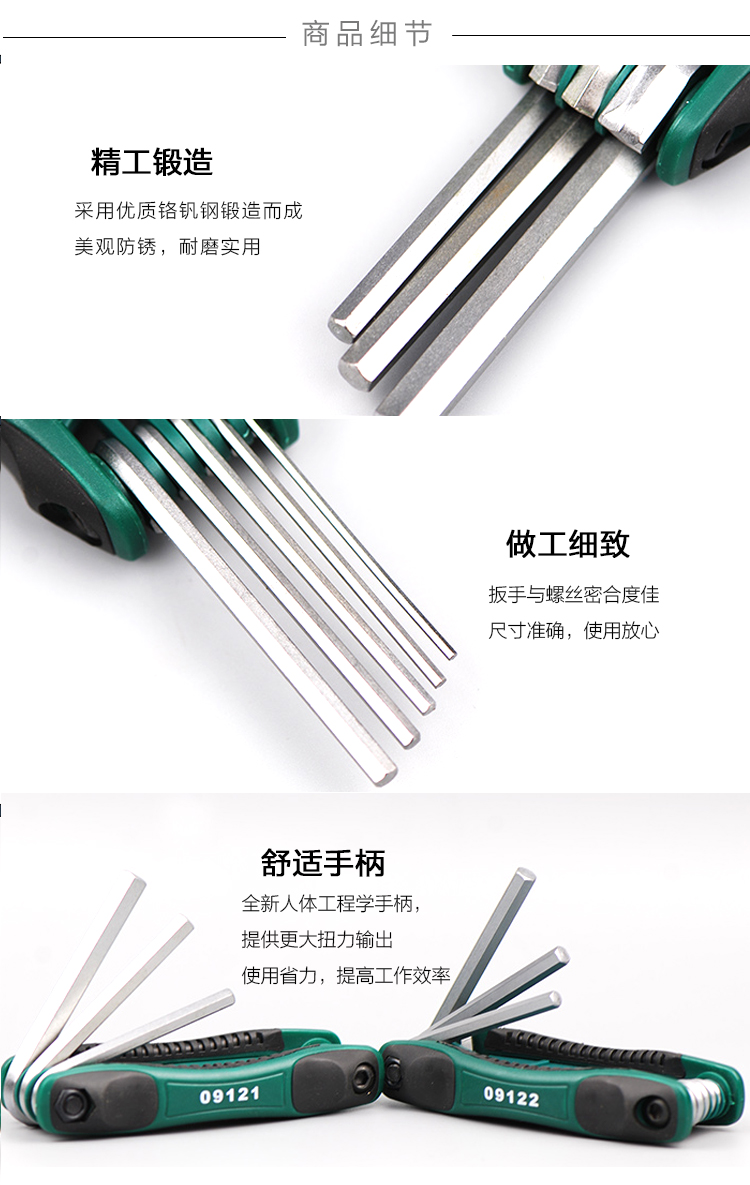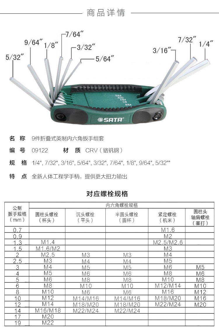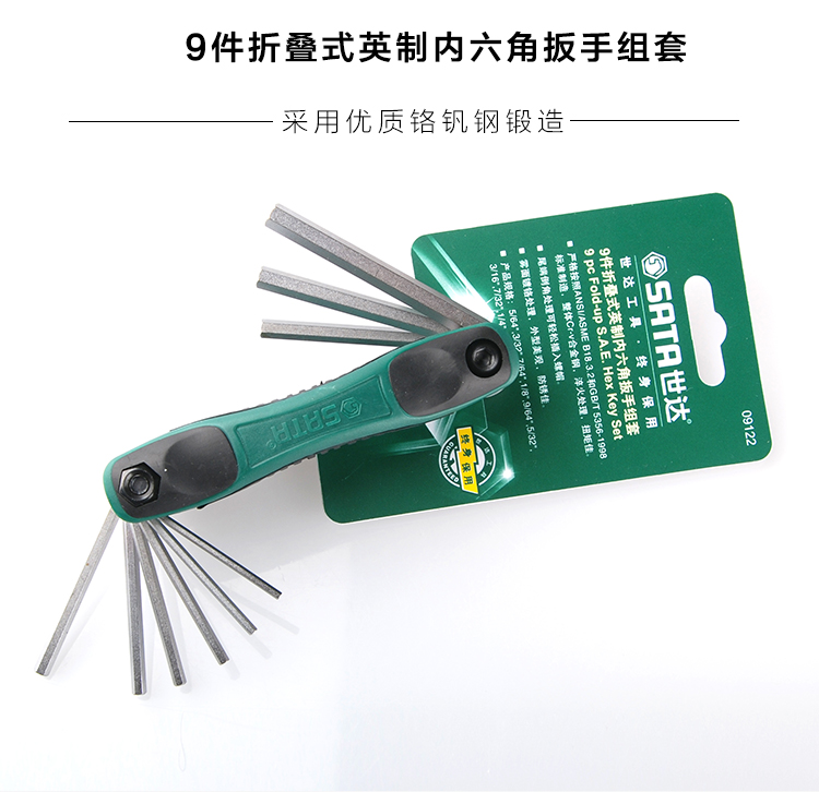 >> 世达工具(SATA) 内六角9件折叠式英制内六角扳手套装/09122