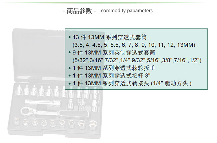 | 世达工具(SATA) 25件13MM系列穿透式套筒组套/09131 |