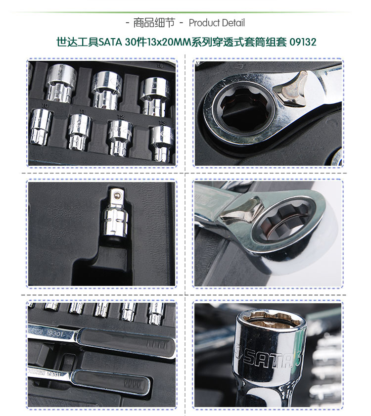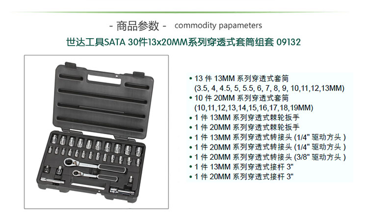 | 世达工具(SATA)箱套装 30件13x20MM系列穿透式套筒组套/09132 |