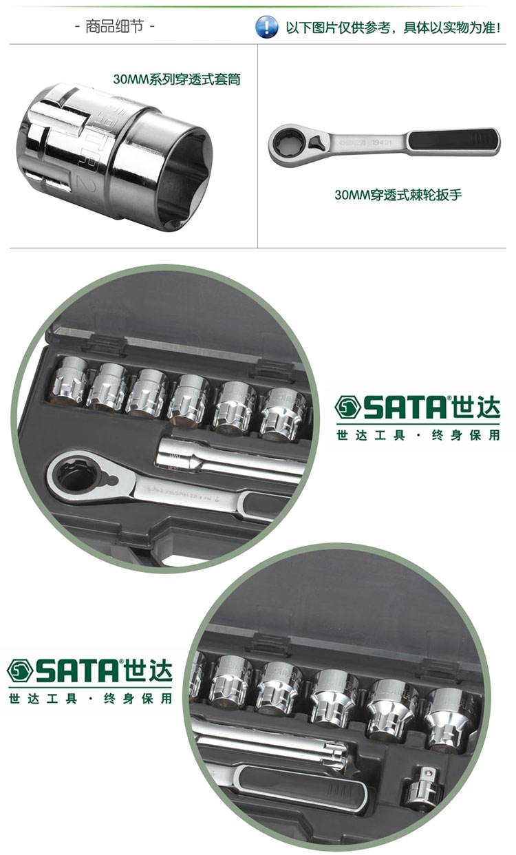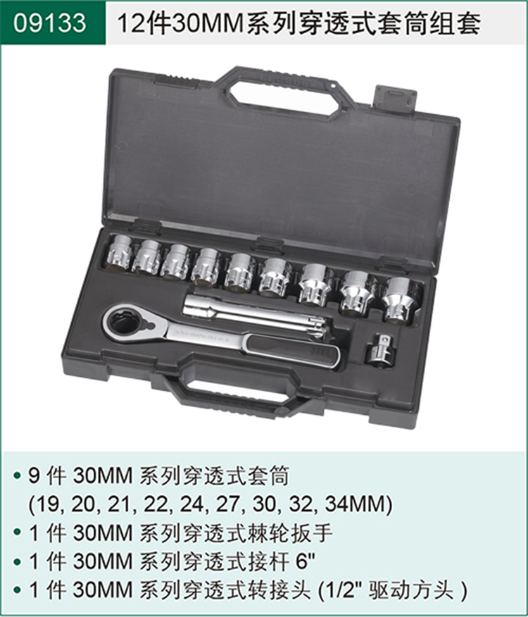 >> 世达工具(SATA)套筒头子12件30mm套筒维修汽修工具组套装/09133