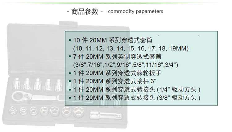21件20MM系列穿透式套筒组套 基本维修组套