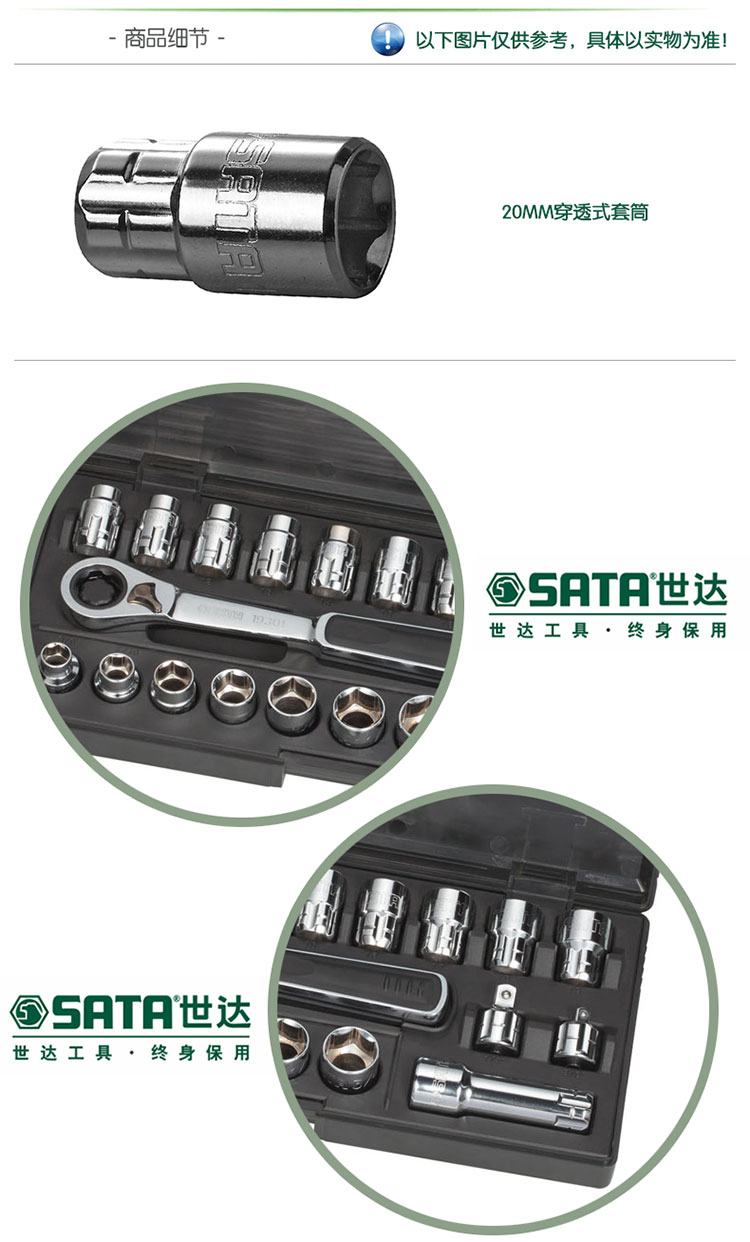 >> 世达工具(SATA) 21件20MM系列穿透式套筒组套/09134