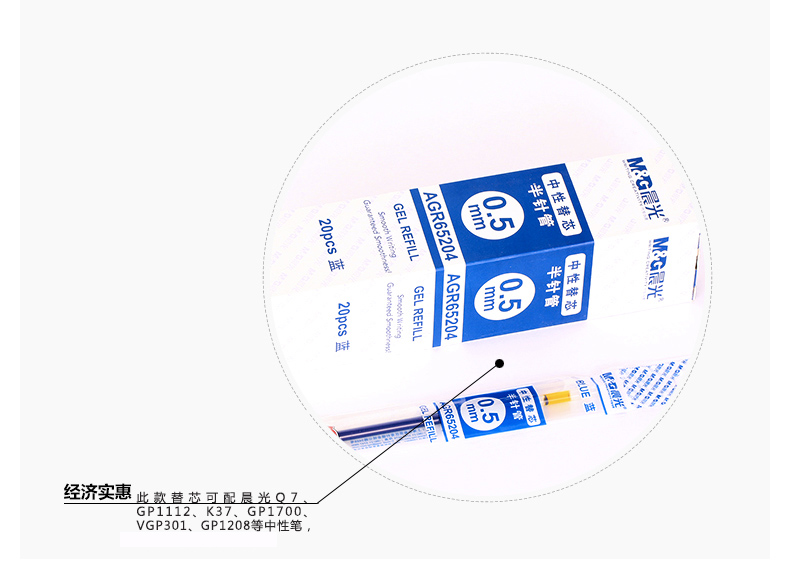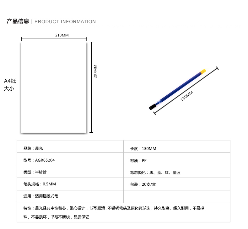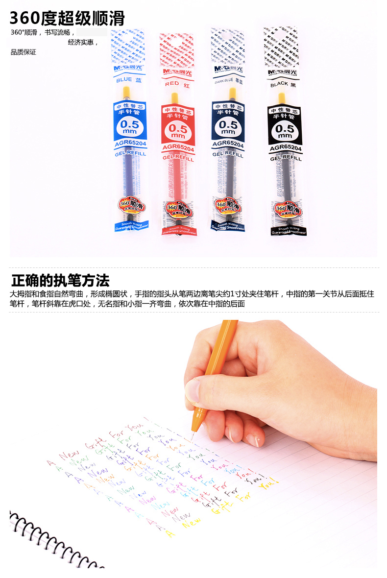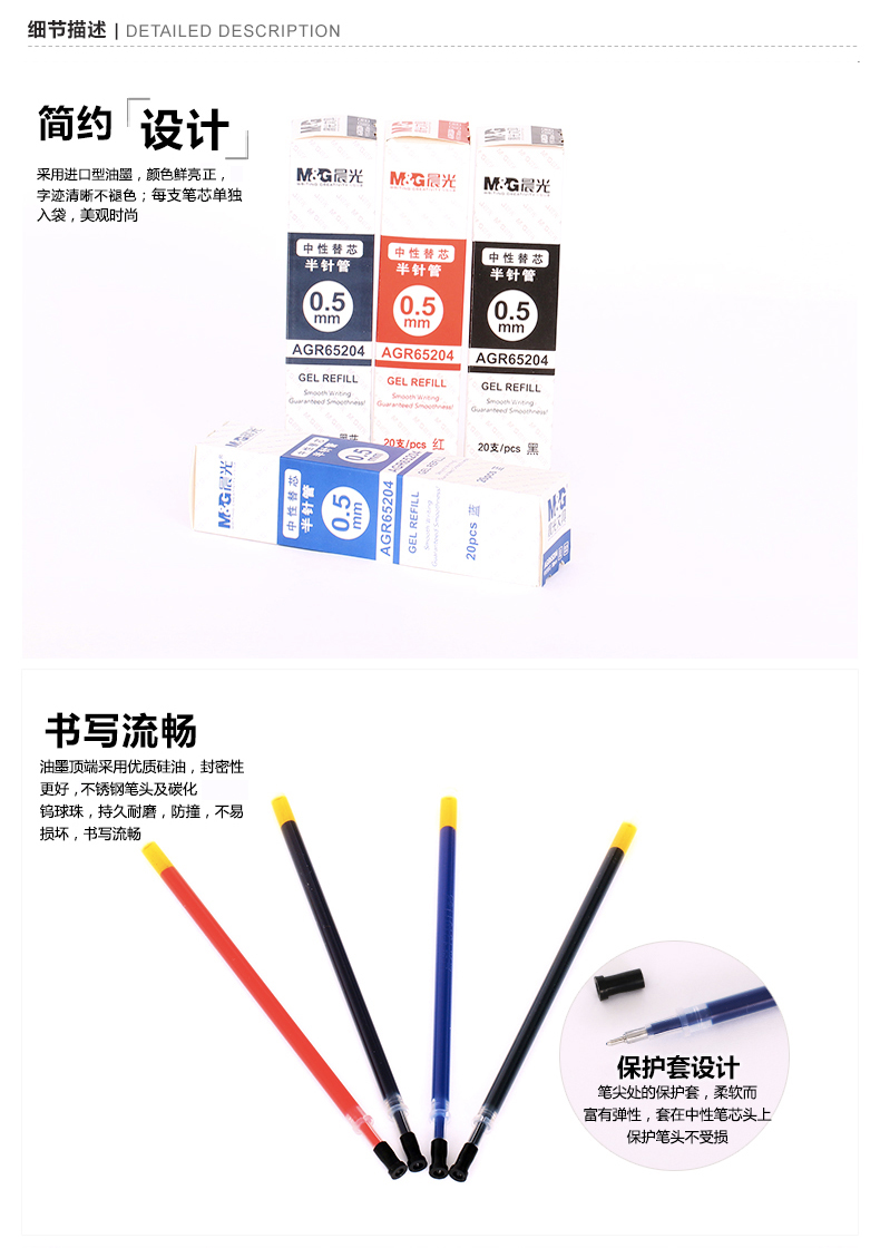| 晨光中性笔芯AGR65204替芯0.5mm半针管透明墨蓝色黑色签字水笔芯 |