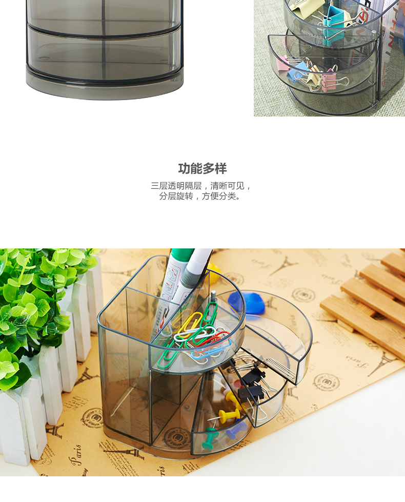 笔筒分区,隔层旋转设计,大小文具都收纳