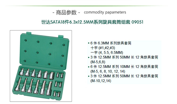 | 世达工具(SATA) 18件6.3x12.5MM系列旋具套筒组套/09051 |