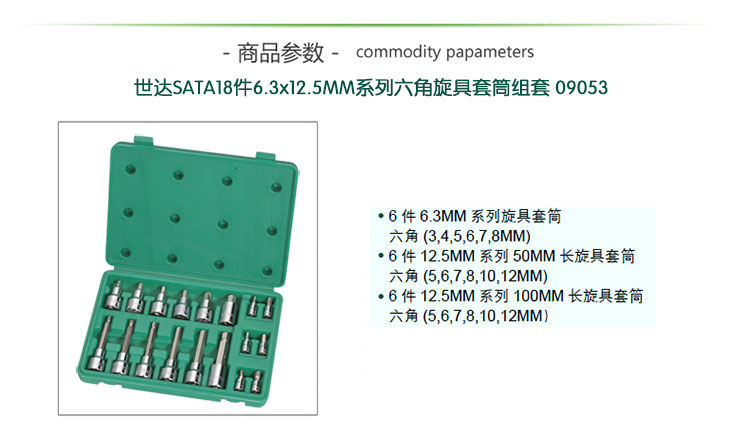 | 世达工具(SATA) 18件6.3x12.5MM系列六角旋具套筒组套/09053 |