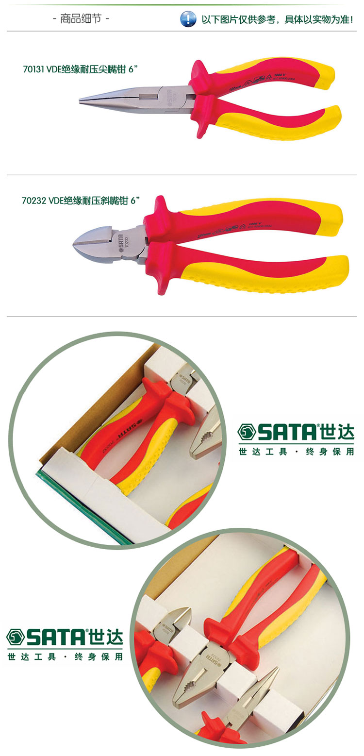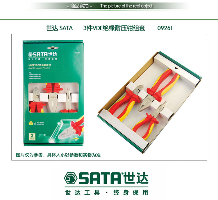 >> 世达老虎钳五金工具(SATA)修理3件套装VDE绝缘钢丝钳子尖嘴钳组套/09261